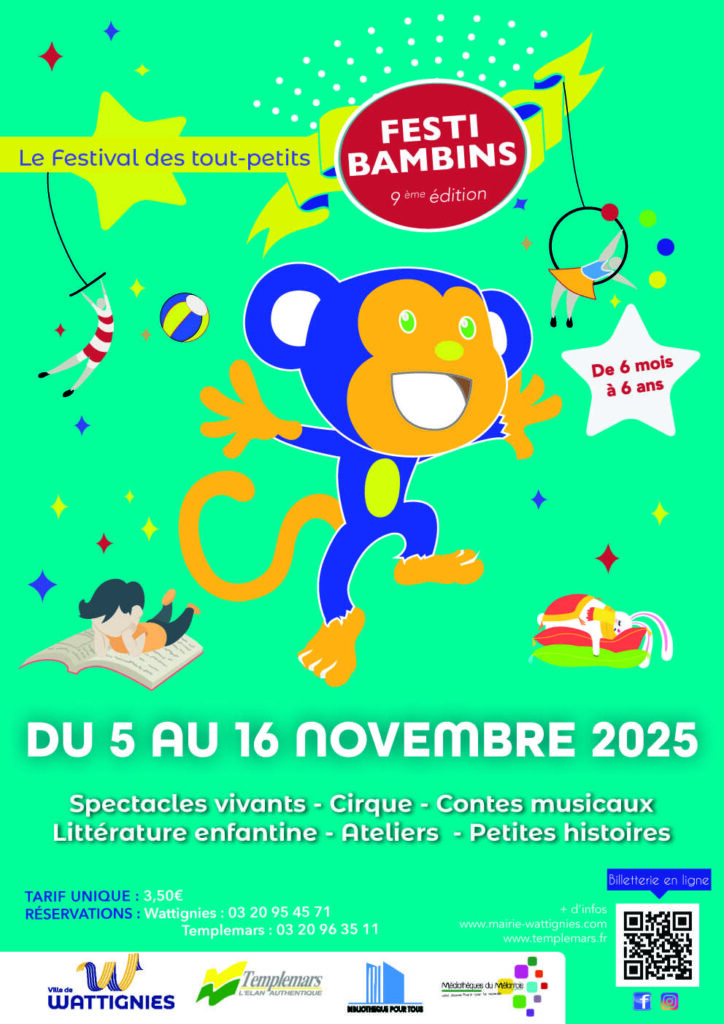 🤸🙂 FESTIBAMBINS – LE FESTIVAL DES TOUT-PETITS DE 6 MOIS À 6 ANS 🙂🤸- du 5 au 16 novembre à Wattignies et à Templemars