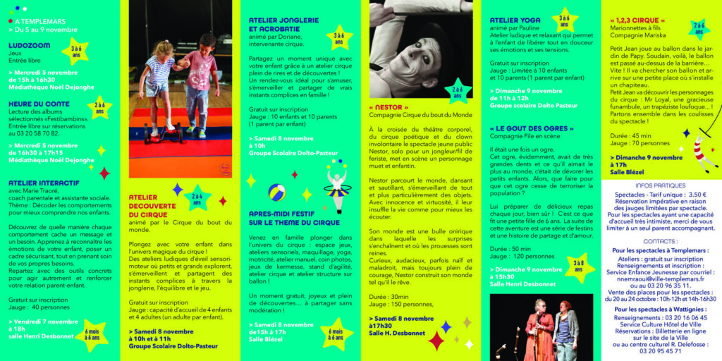 Vous trouverez le programme préparé pour notre commune, cette année, la programmation sera axée sur le thème du cirque 🎪 , avec des ateliers et spectacles spécialement conçus autour de cette thématique: atelier interactif, ateliers de yoga, de jonglerie et d’acrobatie…mais aussi un ludozoom spécial à la médiathèque et aussi des 3 spectacles ! 🤹♀️