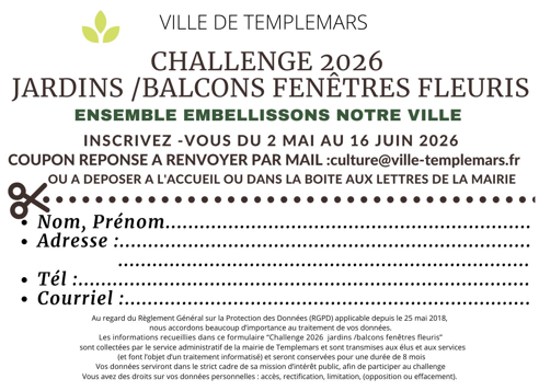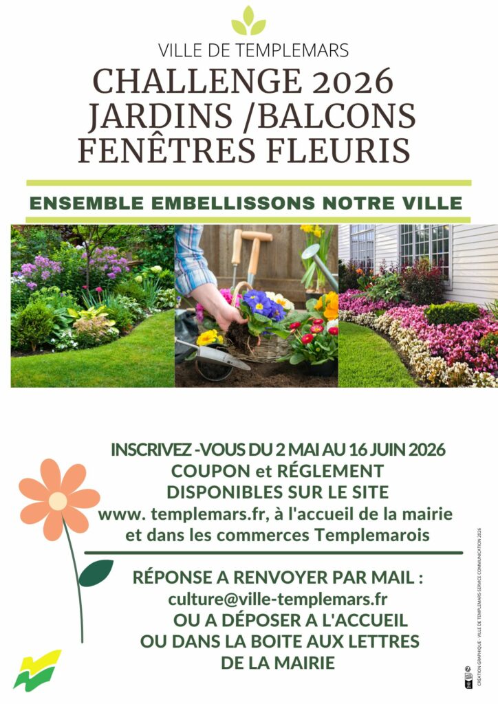 challenge 2026 jardins/balcons, fenêtres fleuris, inscrivez-vous jusqu'au 16 juin 2026