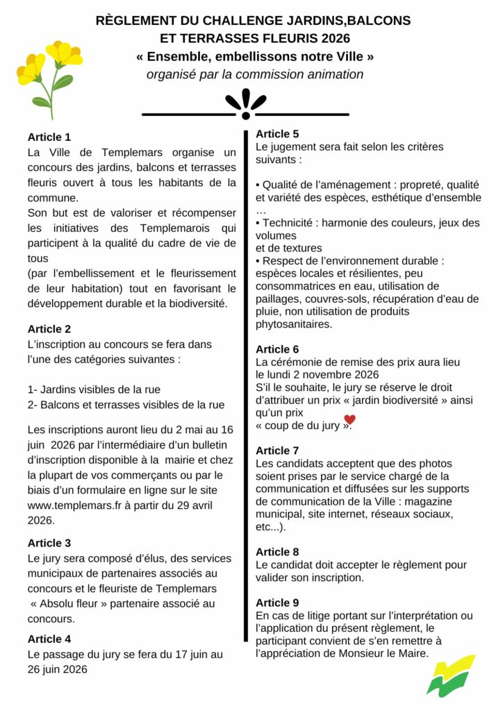 Dans le cadre du Pacte pour la transition, Templemars s’engage activement pour la   protection de la biodiversité et du cadre de vie et souhaite entraîner les habitants dans cette dynamique en ajoutant une dimension environnementale au concours des maisons et balcons fleuris.