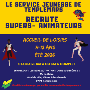 Renseignements au service Enfance-Jeunesse au 03.20.96.35.11/06.80.75.98.64