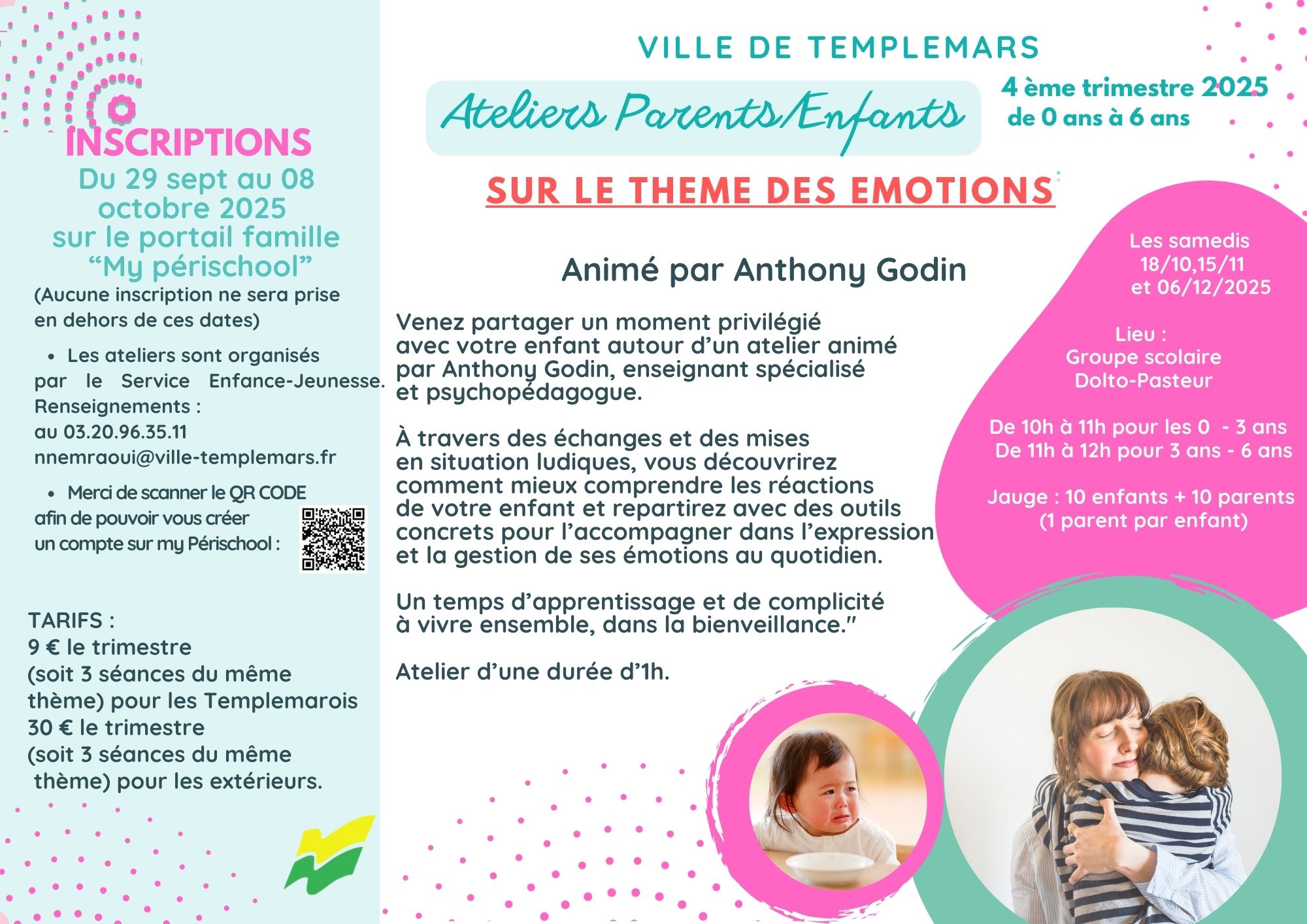 Sous forme d’ateliers, la ville de Templemars organise Les ateliers parents/enfants pour partager en famille des moments privilégiés.