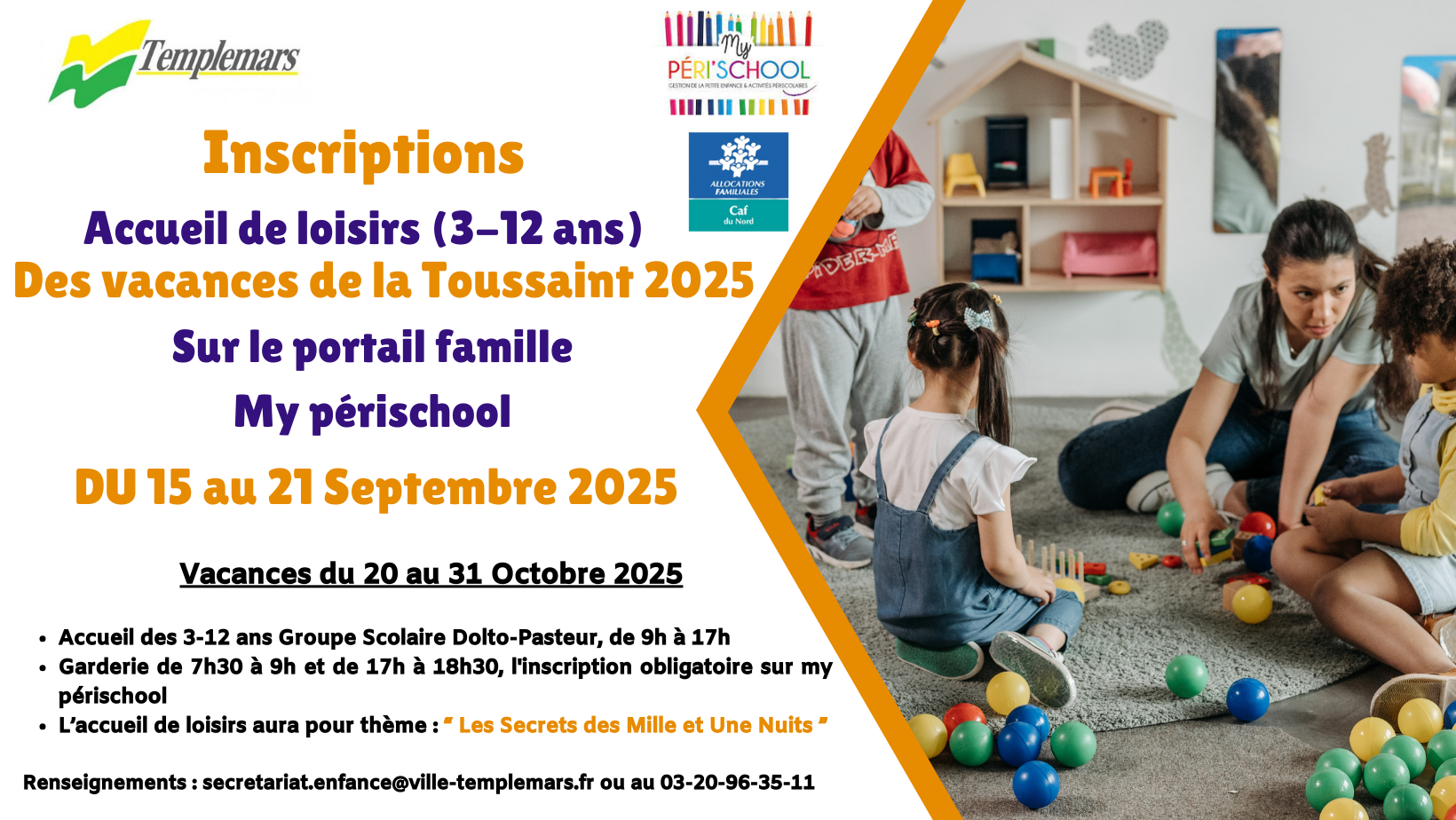 Pour les enfants entrant à l’école maternelle, les inscriptions concernent les enfants nés au plus tard le 31 décembre 2022 et qui ne sont pas déjà scolarisés à Templemars.